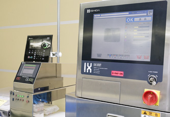 製造ラインに設置された、金属探知機、X線検知機で異物の混入を最後まで厳しくチェックします。